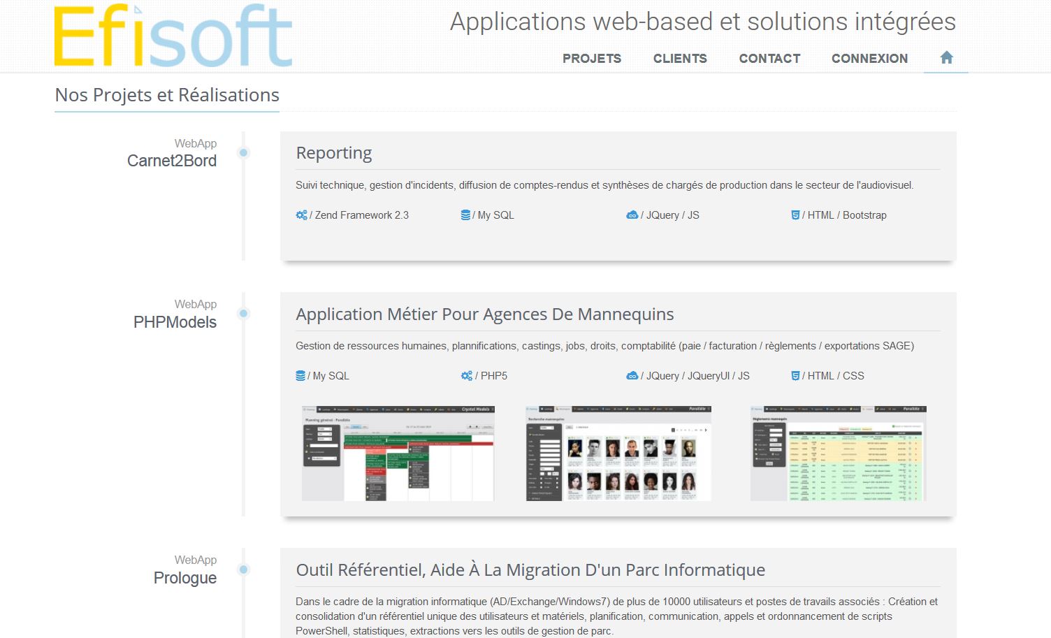 Start-up spécialisée dans le développement web d'applications métier, sites Internet managés, CMS, intranet, extranet ou encore Internet mobile dans de nombreux secteurs d'activités (production télévisuelle, services à la personne, mannequinat, immobilier d'entreprise etc.).