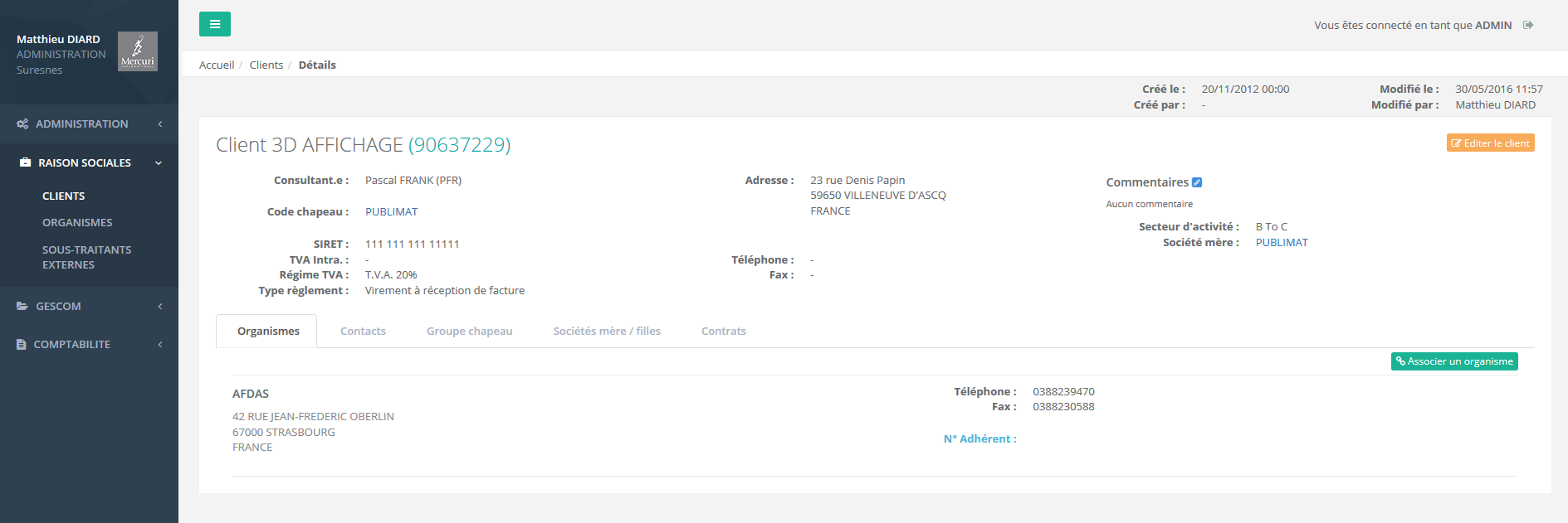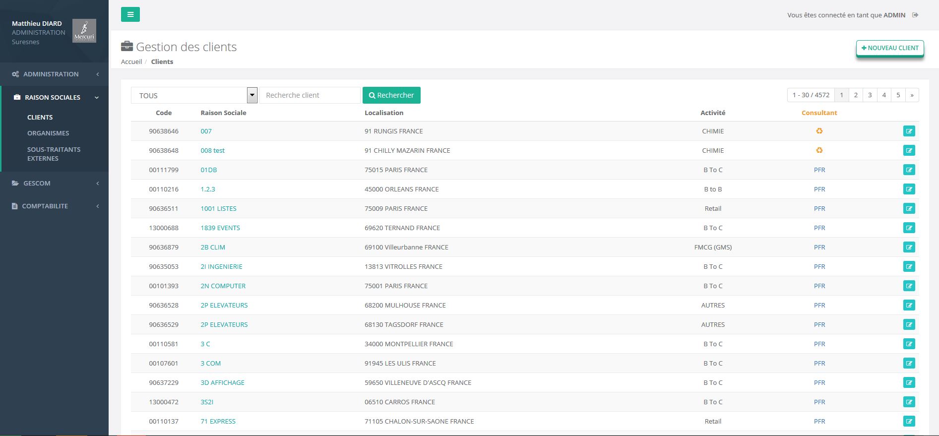 La société MERCURY INTERNATIONAL a mandaté EFISoft afin de faire la refonte de leur application de gestion commerciale. Le périmètre de cette application s'étend à la gestion des clients et prestataires, mais aussi la facturation et l'édition des tableaux de bords commerciaux.